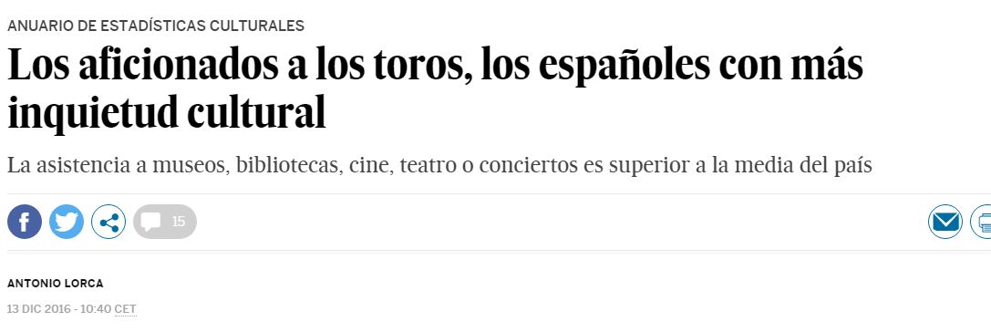 Leer esto de El País y ponerse a superar en inquietudes culturales a los aficionados a la tauromaquia: