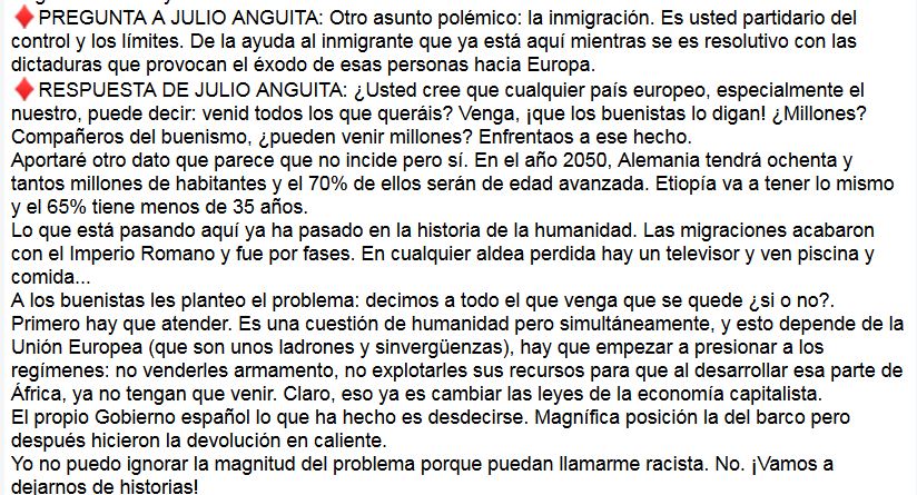 Julio Anguita y la emigración: que vengan, pero ordenadamente; no podemos acoger a todos.