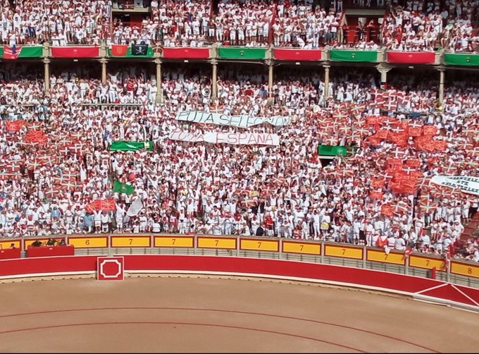 Y el día 14 la chusma, la canalla, la parte más arrastrada de Navarra sacaron una pancarta para insultar al resto de España. No deberían volver a una plaza de toros por ese comportamiento. Gentuza de la peor ralea, subhumanos, abertzales de la mierda.