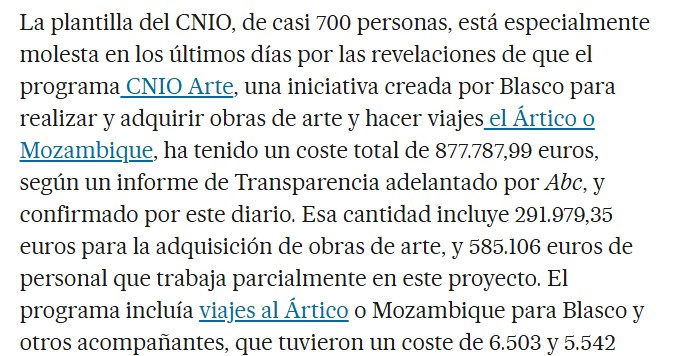 En España los investigadores cobran cuatro perras. Pero los directivos, los jefes, se forran. Solo en democracia los jefes se forran impunemente. En este caso, dos jefas han abierto una "sección de arte" en el CNIO en el que ellas dos gestionan millones de euros en asuntos propios: compra venta de obras de arte.