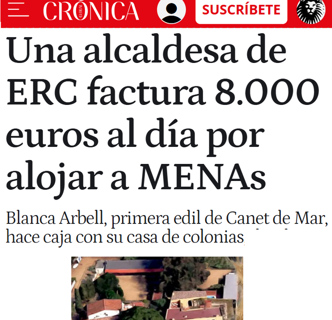 Los "menas" son una mina para lucrarse: cuantos menos escrúpulos, mayor el lucro. Una alcaldesa de ERC factura ocho mil euros al día 8.000 al día por alojar menas en su casa de colonias