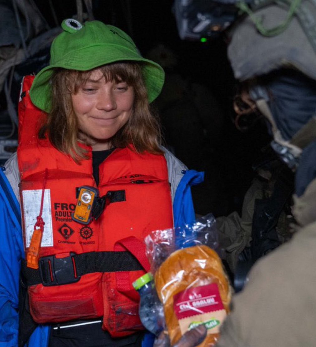 Greta ha denunciado haber sido secuestrada por el ejército de Israel que abordó su barco. Greta en el aeropuerto. y una foto de una joven secuestrada por terroristas palestinos
