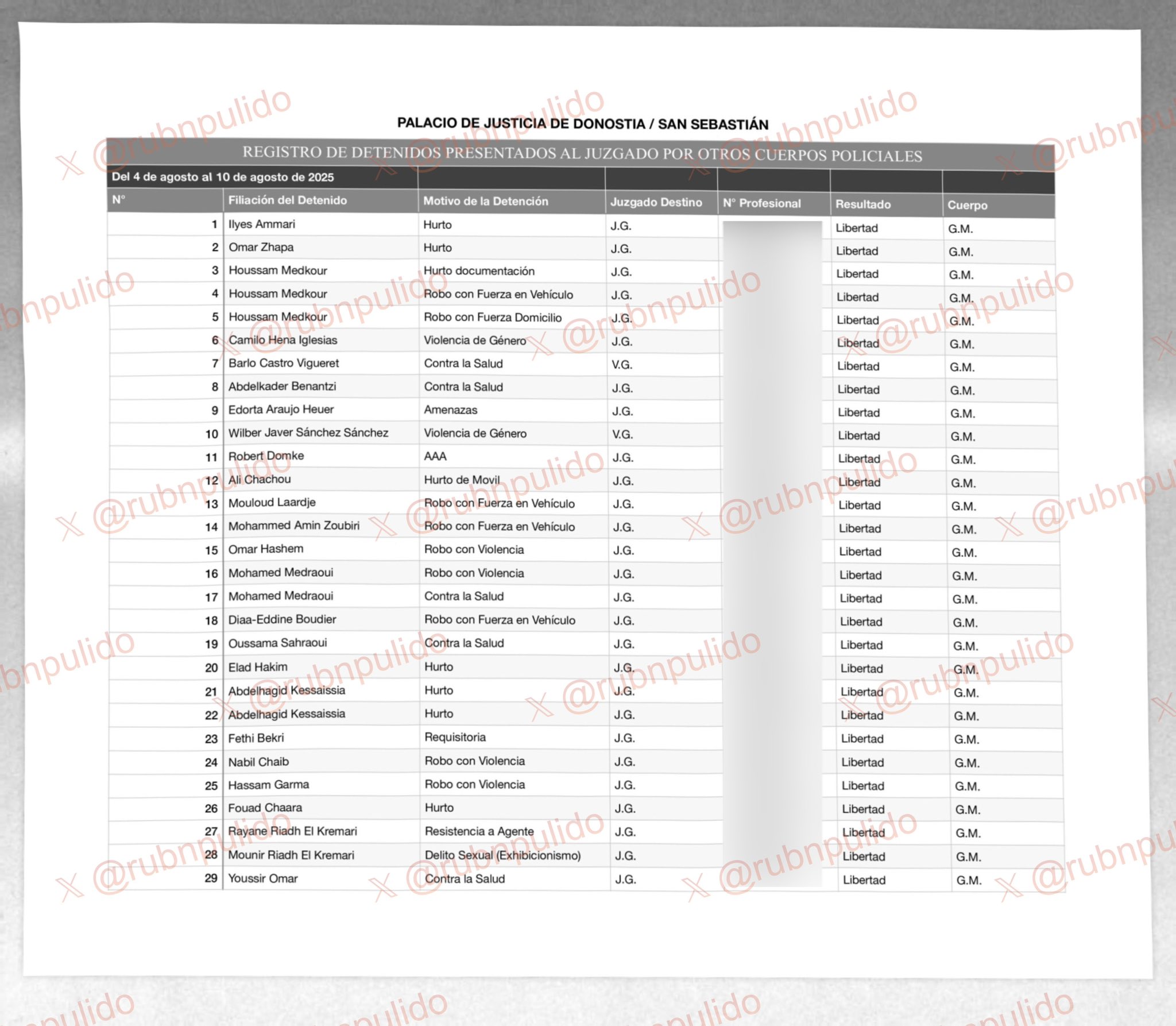 Lo que vale para San Sebastián vale para Bilbao. Esta es la lista de detenidos en los primeros días de agosto. No está bien señalar que la mayoría de ellos proceden de una región geográfica bastante concreta. Esto es así.