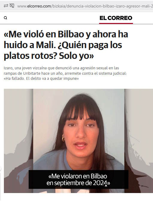 Poco se habla de esto, solo que de vez en cuando se escapa algo, se filtra, no sabemos cómo, y llega a las redes sociales: Detienen en Santutxu a un joven de 22 años acusado de tres agresiones sexuales en dos días, robo con violencia y lesiones https://www.elcorreo.com/bizkaia/detien ... 12-nt.html