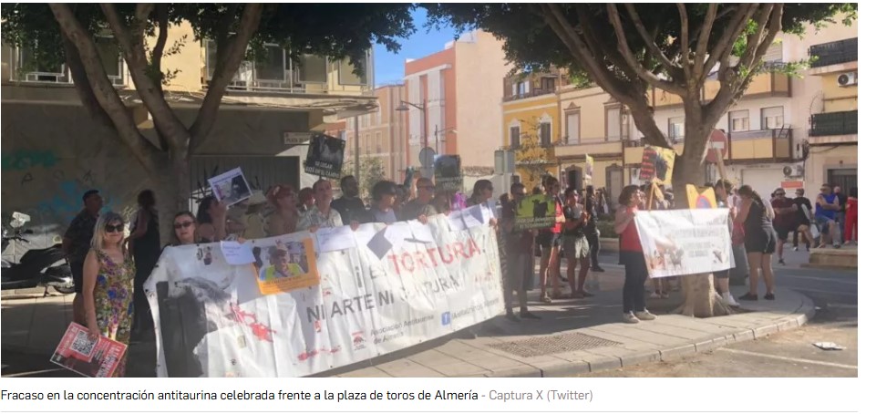 Fracaso de la manifestación antitaurina en Alemría. Unas dos docenas de personas acudieron a la manifestación convocada por el partido pacma en Almería: un fracaso rotundo.