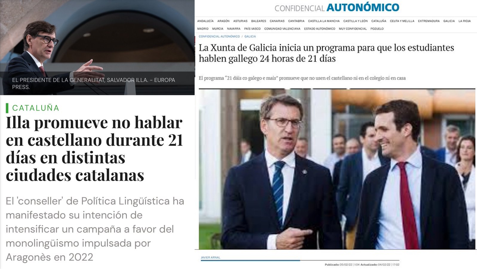 En Galicia los gallegos quieren hablar gallego; los gallegos son de carácter sociable, y con el gallego están muy cerca del portugués, que son casi 300 millones de hablantes. El caso catalán es muy distinto.