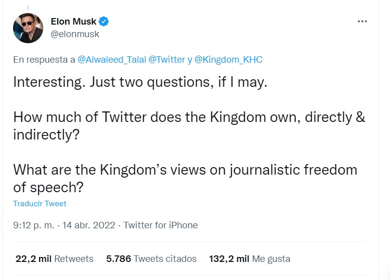 Un tal Elon Musk ha dicho: compro, y sacó de su cartera 40.000 millones de dólares para quedarse con tuiter... os indico que entre los principales accionistas de Tuiter está Arabia Saudí, ¡con la sharía topaste!