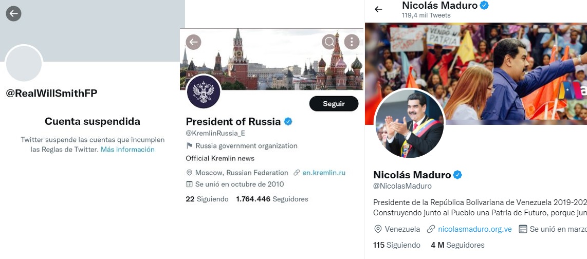 Aquí está con su foto, la bofetada de Willi Smith le valió la expulsión de tuiter; pero aquí publican Putin y Maduro y no pasa nada: