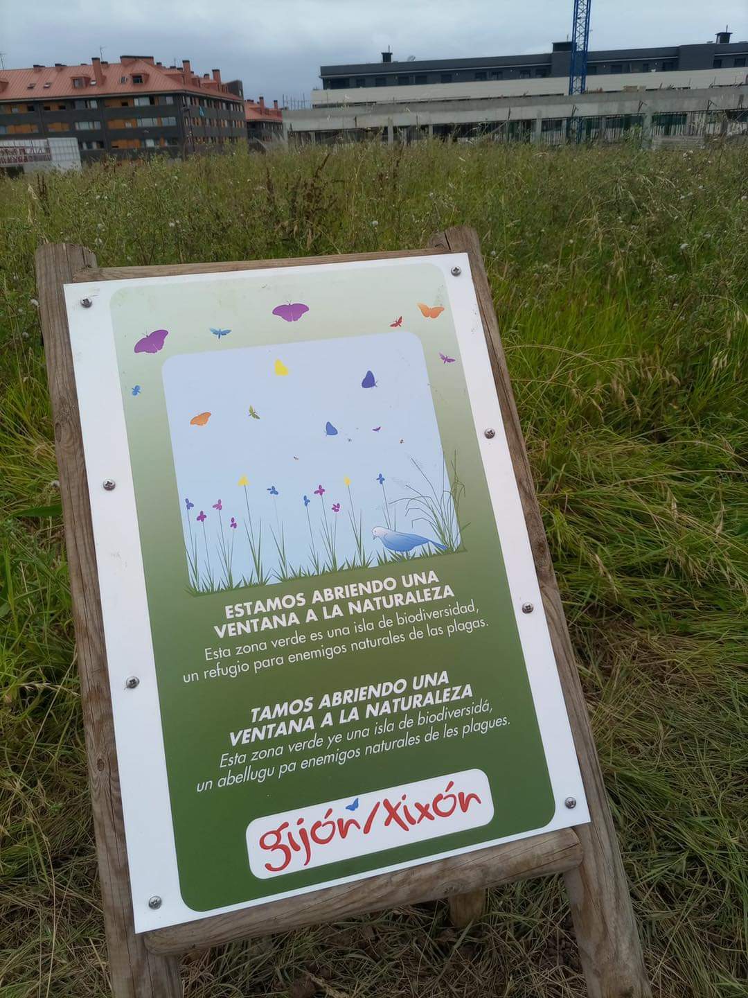 La alcaldesa de Gijón se apunta ahora al animalismo extremo, todo sea por no mantener y cuidar los jardines y espacios verdes de manera correcta, deja que crezcan todas hierbas y terreno libre para todo tipo de insectos, venenosos si quieren también. Cartel: