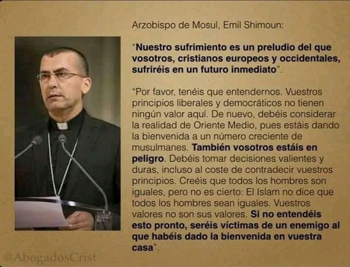 Arzobispo de Mosul, Emir Shimoun: "Nuestro sufrimiento es un preludio del que vosotros, cristianos europeos y occidentales, sufrirés en un futuro inmediato".