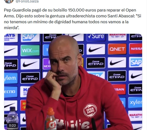 Hay que recordar a Pep Guardiola que el yihadismo se financia con las pateras que llegan a Canarias. Y con las que salen de Libia.