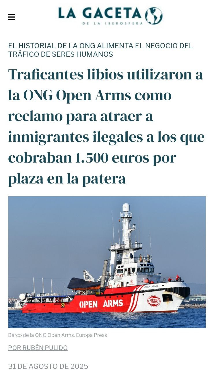 Open Arms es un servicio de "taxi" controlado por mafias que se dedican al tráfico de personas en situación de vulnerabilidad. Dentro de unos meses "Pep" dirá que no sabía nada de eso, y seguirá tan campante. Pero una cosa os digo, Pep no da euro sin retorno.
