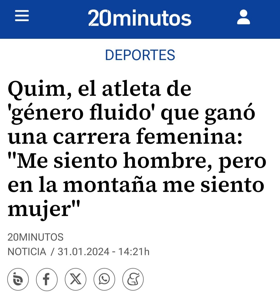 Soy hombre, pero en la montaña me siento mujer: compite en carreras femeninas y se lleva todos los premios. Quim Durán habría quedado el número 50 en categoría masculina pero se inscribió como ‘Quima’ en categoría femenina. La Ley Trans catalana permite la participación en competiciones y acceso a vestuarios conforme a la identidad manifestada por el deportista. Y a llevarse los premios, claro.