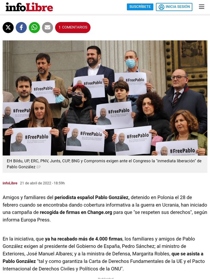 El espía Pablo González recibió apoyo de estos partidos: Bildu, Unidas Podemos, ERC, PNV, Junts, CUP, BNG y Compromís. Un tipo que espía para un régimen tirano.
