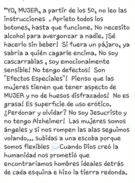 "YO, MUJER, a partir de los 50, no leo las instrucciones."