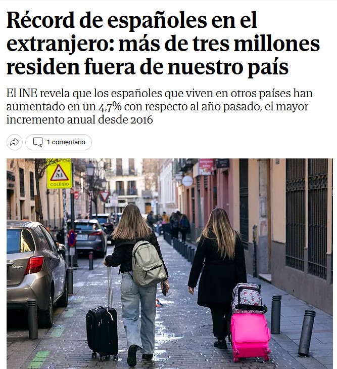 Tres millones de españoles residen en otro país. La inmensa mayoría son jóvenes que salieron de España en busca de un futuro mejor. Trabajan, y cotizan, en otros países. A la pérdida de compatriotas obligados a emigrar se une eso, la pérdida de profesionales altamente cualificados que trabajan y cotizan en otros países.