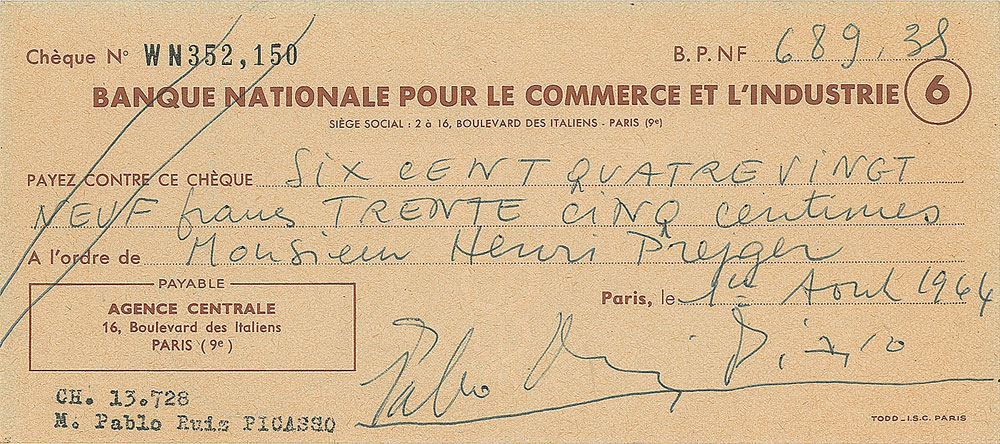 Un día, Picasso comió en un restaurante parisino y, al terminar, el dueño le pidió que firmara un cheque. El pintor accedió, pero cuando el dueño quiso guardarlo para cobrarlo, Picasso le dijo: “No sea tonto, con mi firma en ese papel puede pagar la hipoteca”. La obra, incluso mínima, ya era un valor. ¿Genio o prestidigitador?