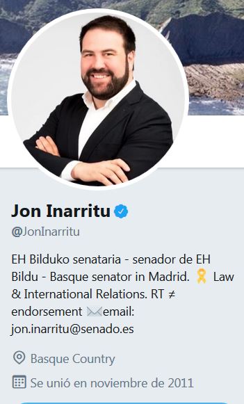 Solo te tomará un minuto. Pon a este "senador vasco" en su sitio, en el de los intolerantes, entre los que fomentan la intolerancia; entre los que utilizan las redes sociales para provocar insultos con sus intervenciones.