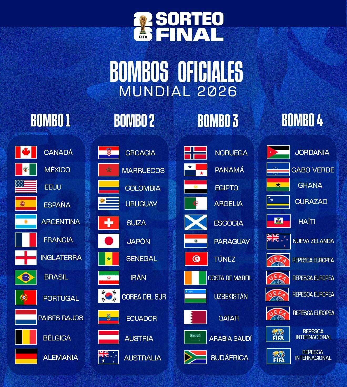 Todos los hombres que no tienen novia están esta tarde a las 18.00 horas pendientes del sorteo y el cruce de grupos para el Mundial 2026. Los que no tienen novia y los que sí también, respondo a la mía (temporal) aunque no lo sabe, pero seguimos intentando. Ojo, porque para los toros va a ser una complicación con los horarios y las fechas con corridas de toros. Que Dios reparta suerte. Que ahuyente la mala muerte. Que ustedes lo pasen bien.