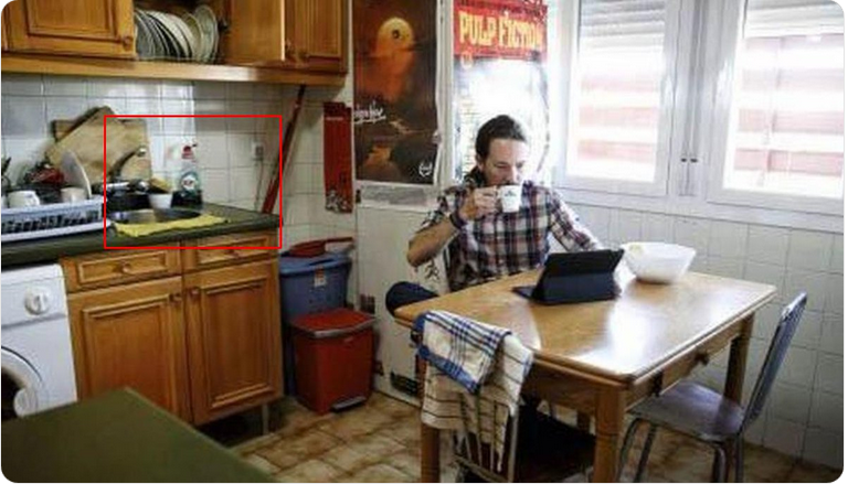 Y aquí han pillado al líder de Podemos -me malicio que era un montaje, una pregunta pactada- Que dice nuestro campeón "marujero" que usa Mistol que es más barato, que no sabe el precio de Fairy... que sus cacharros son de Mistol -no de marca blanca- ni de la marca líder... Pero le han pillado con el carrito de Mistol. Vean la foto: