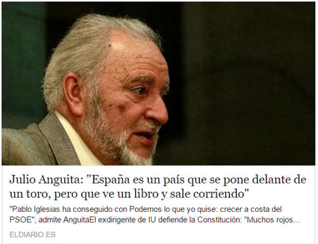 Pero estamos en el foro de "taurinización" ¿Se puede taurinizar a un personaje como Julio Anguita? Me temo que no. La tauromaquia incluye tanta libertad que no cabe en los límites ideológicos de Julio Anguita.