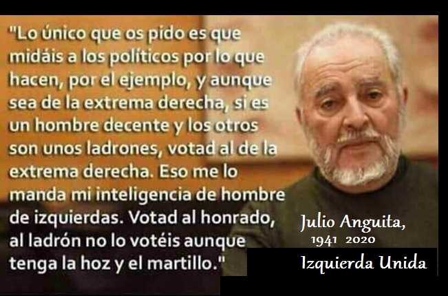 Porque Julio Anguita tuvo tiempo, mucho tiempo, para saber lo que era el comunismo, así en España como en la URSS, en Cuba o en Nicaragua, o en Venezuela. Esta es la foto con su frase: