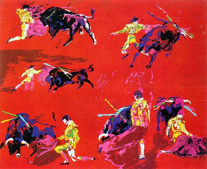 Sus estudios sobre tauromaquia son un ejemplo claro de su obra: coloristas, llenos de fuerza, expresionistas, y expuestos con respeto y curiosidad. Todos los meses del año la firma LeRoy Neiman aparece en las redes sociales ilustrando algún deporte o deportista, espectáculo o actor, políticos, etc. Aquí tenéis unos ejemplos de su aproximación al mundo del toro.