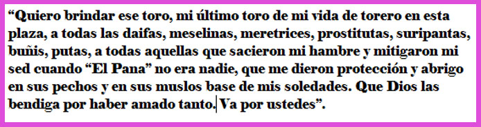 El Pana y su polémico brindis a aquellas mujeres que han amado tanto. El toreo es un mundo abigarrado, múltiple, variado, donde todo cabe, con el respeto debido.