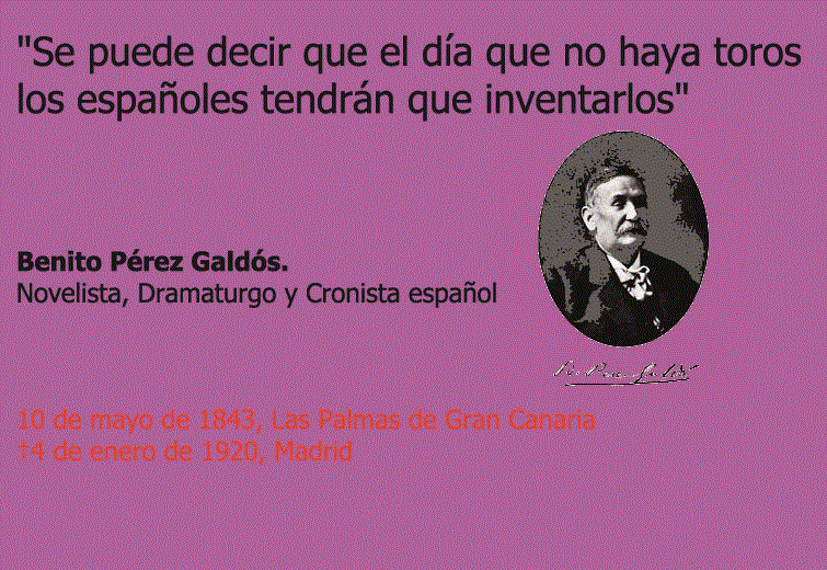 Tal día como hoy nació Benito Pérez Galdós ¿Después de Cervantes es el mejor escritor en lengua castellana? Hay controversia. Pero no hay disputa de sus conocimientos y afición al mundo del toro, sus personajes y su peculiar y abigarrado "mundillo". Una frase que resume el sentir, y el pensar de don Benito Pérez Galdós.