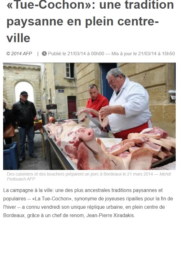 En Francia también matan el cerdo, en Francia, de Francia, en esta foto, en Burdeos, no en la sierra de Francia.