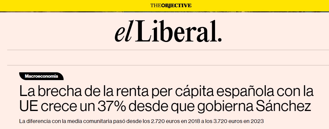 La brecha de la renta per cápita española con la UE crece un 37% desde que gobierna Sánchez