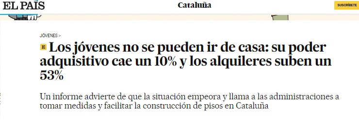 El poder adquisitivo de los jóvenes cae un 10% y los alquileres suben un 53%. La tasa de emancipación se ha reducido (del 70% al 74%) y cada vez se produce más tarde. Ser soltero se vincula a una reducción del 75% en la probabilidad de emanciparse