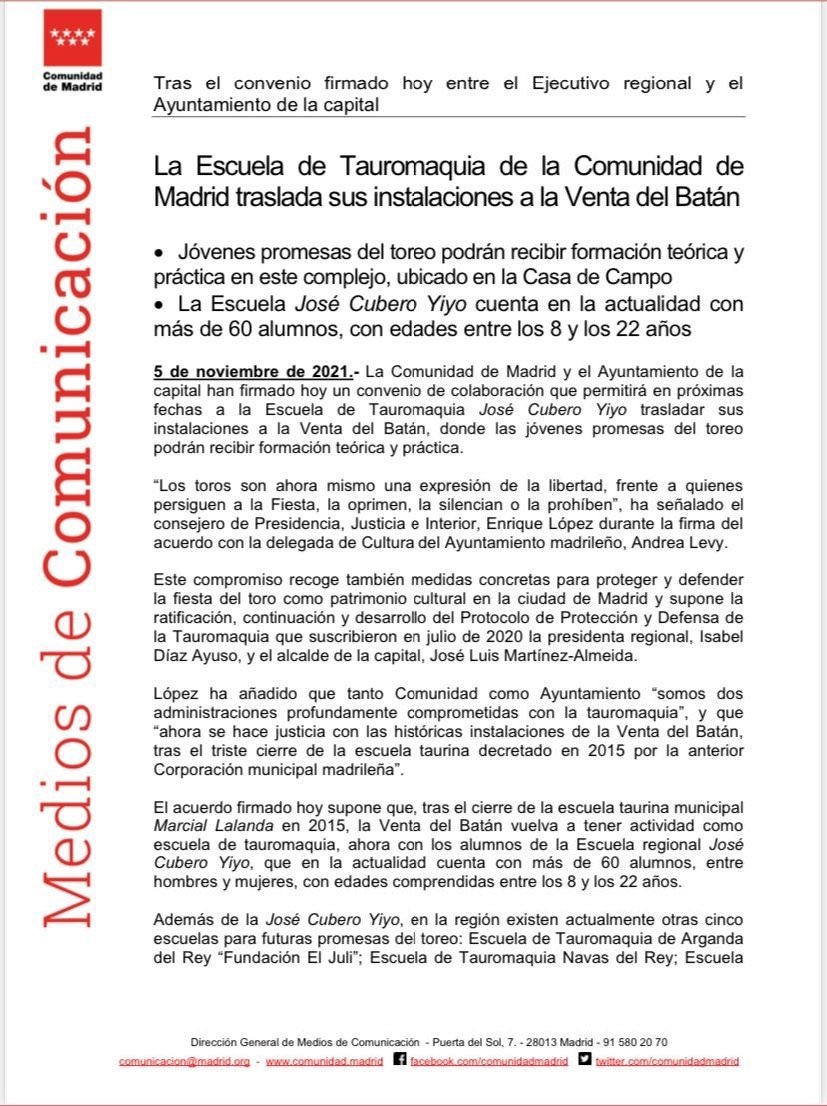 A cencerros tapados ha regresado la gente de la escuela Yiyo a la sede de la primera escuela de Madrid, La Venta del Batán. Se fueron de allí a montar la escuela Yiyo en la plaza de las Ventas sin pelear ni cinco minutos defendiendo el Batán, cobrando bien, eso sí. Y vuelven casi en silencio. ¿?