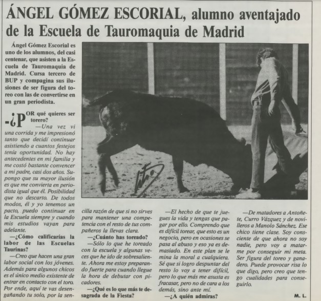 Re: Ángel Gómez Escorial cuando era novillero. El Ruedo 1992