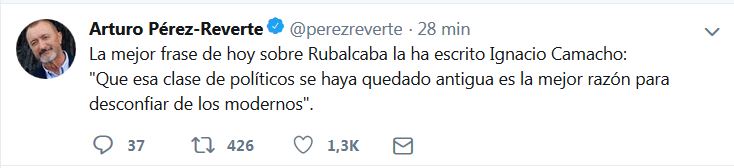 Y otro tanto cabe decir de esta frase seleccionada por el Académico de la Lengua, el Sr. Pérez Reverte: ¿Os atrevéis con alguna frase para resumir la trayectoria de Rubalcaba en política?