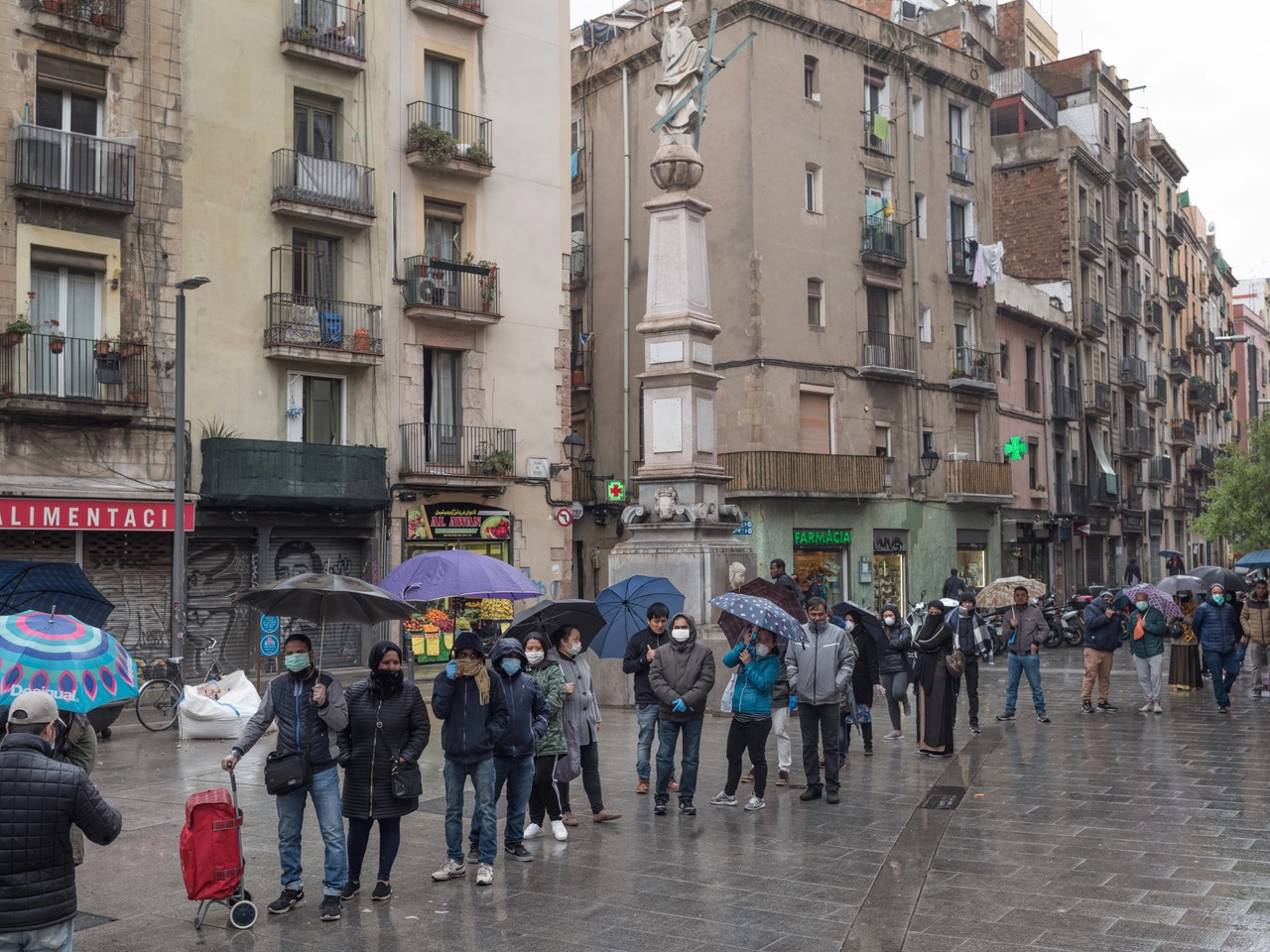 Cola del hambre en Barcelona, barrio El Raval