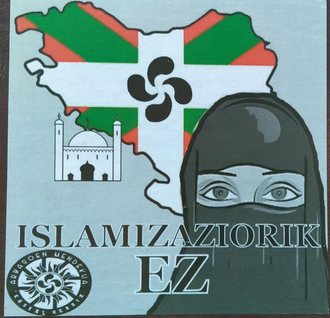Como se ve en el cartel, los elementos más "racializados" de Vizcaya comienzan a denunciar la "invasión" de musulmanes que no llegan dispuestos a aprender euskera ni a comportarse como "buenos vascos"