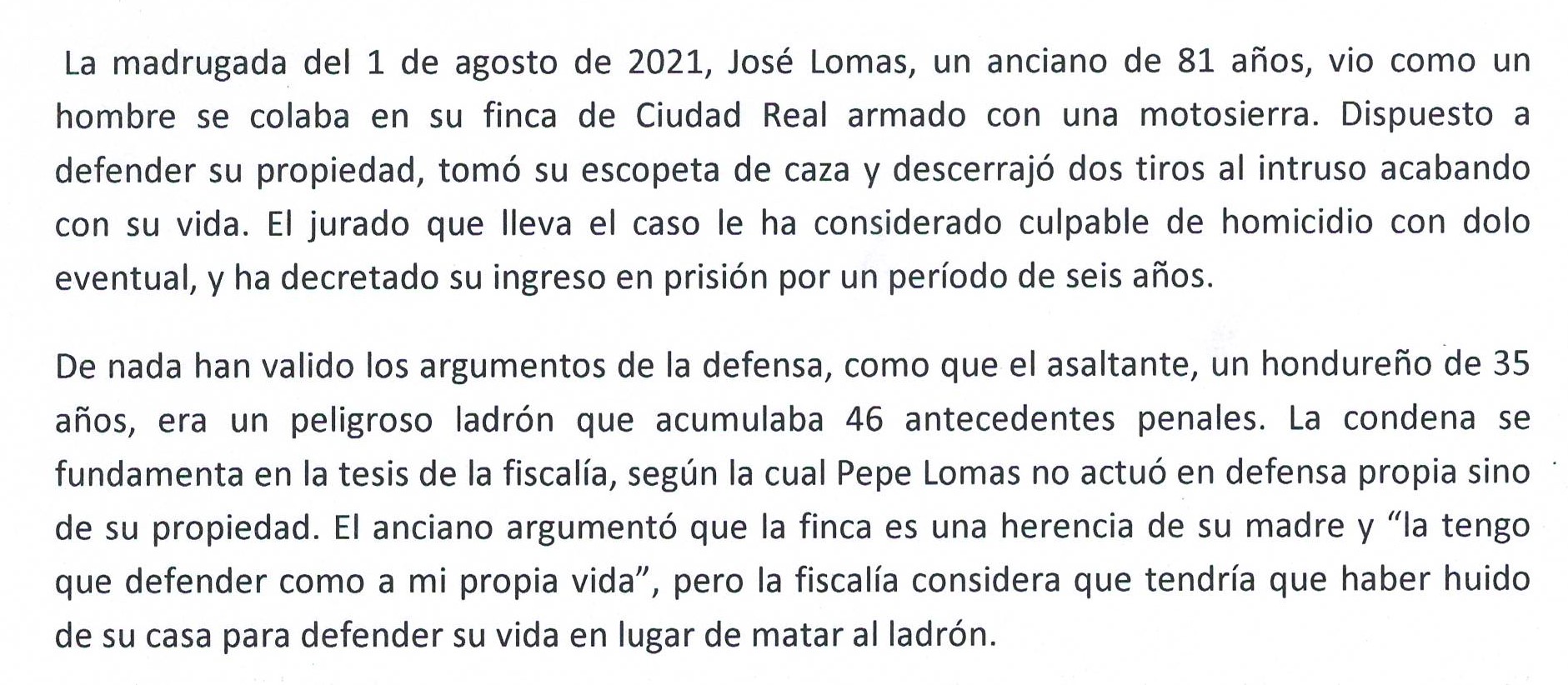 Re: El hombre de 77 años que defendió su vida y su propiedad lo va a pasar mal