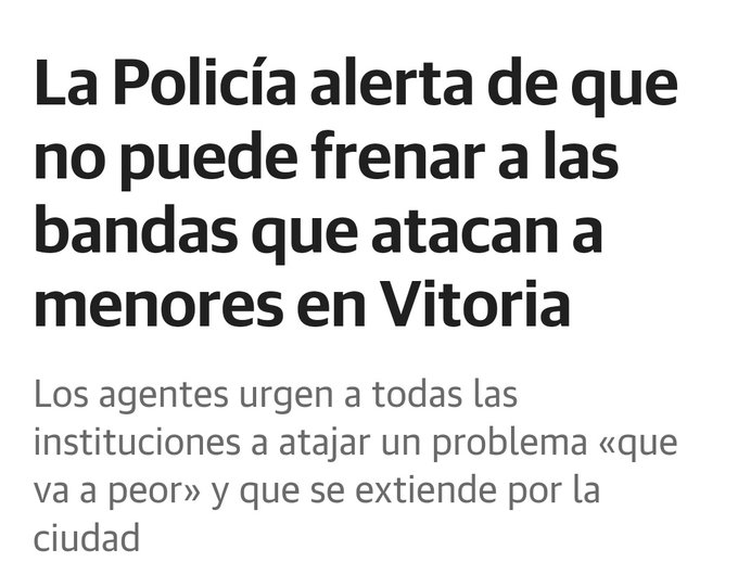 Vitoria: La policía alerta de que no puede frenar a las bandas que atacan a menores en Vitoria. Así están las cosas.