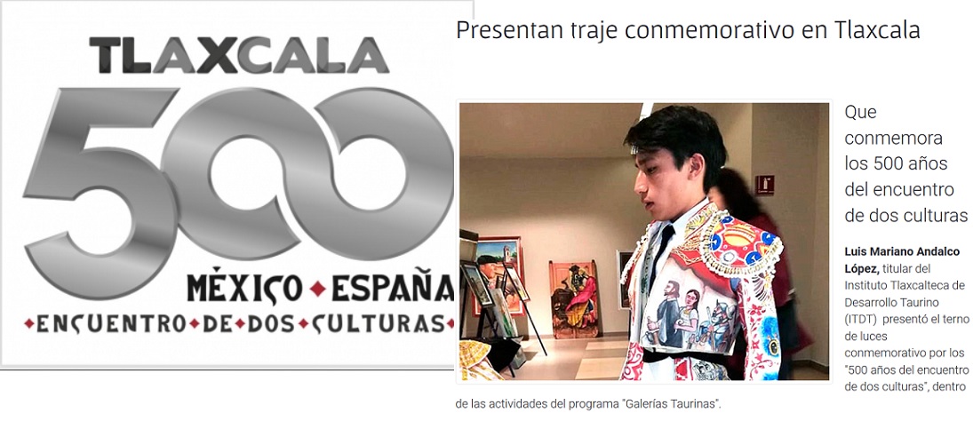 Los 500 años ofrecerán actividades orientadas a divulgar el pasado mirando al futuro. Una mezcla de cultura española, cultura nativa de la época; religión; carnavales; tauromaquia...: un año entero de celebraciones. Traje de luces conmemorativo de la llegada de los españoles, los primeros toros, y las primeras corridas de toros a México.