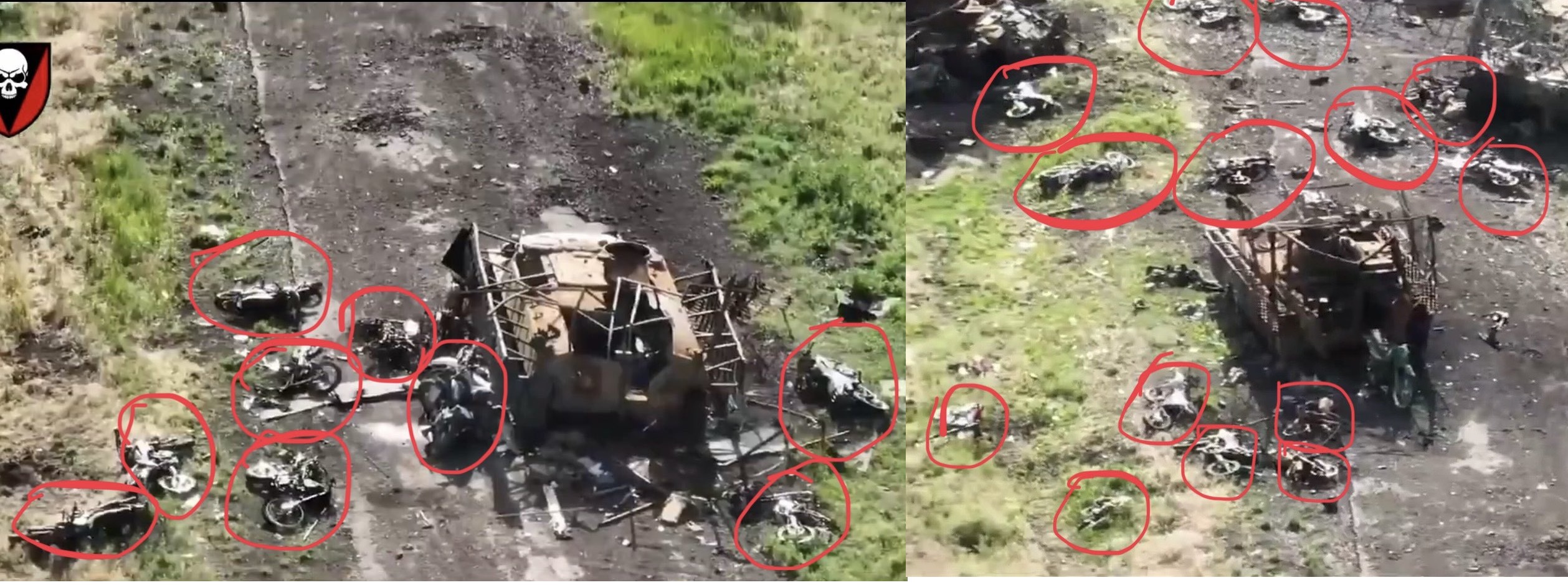No vayas a la guerra en moto: esas imágenes tan chulas que habréis visto de soldados con un fusil y una moto que recorren las líneas del frente... son una trampa, una ratonera en nuestros días. estas imágenes lo dicen todo.