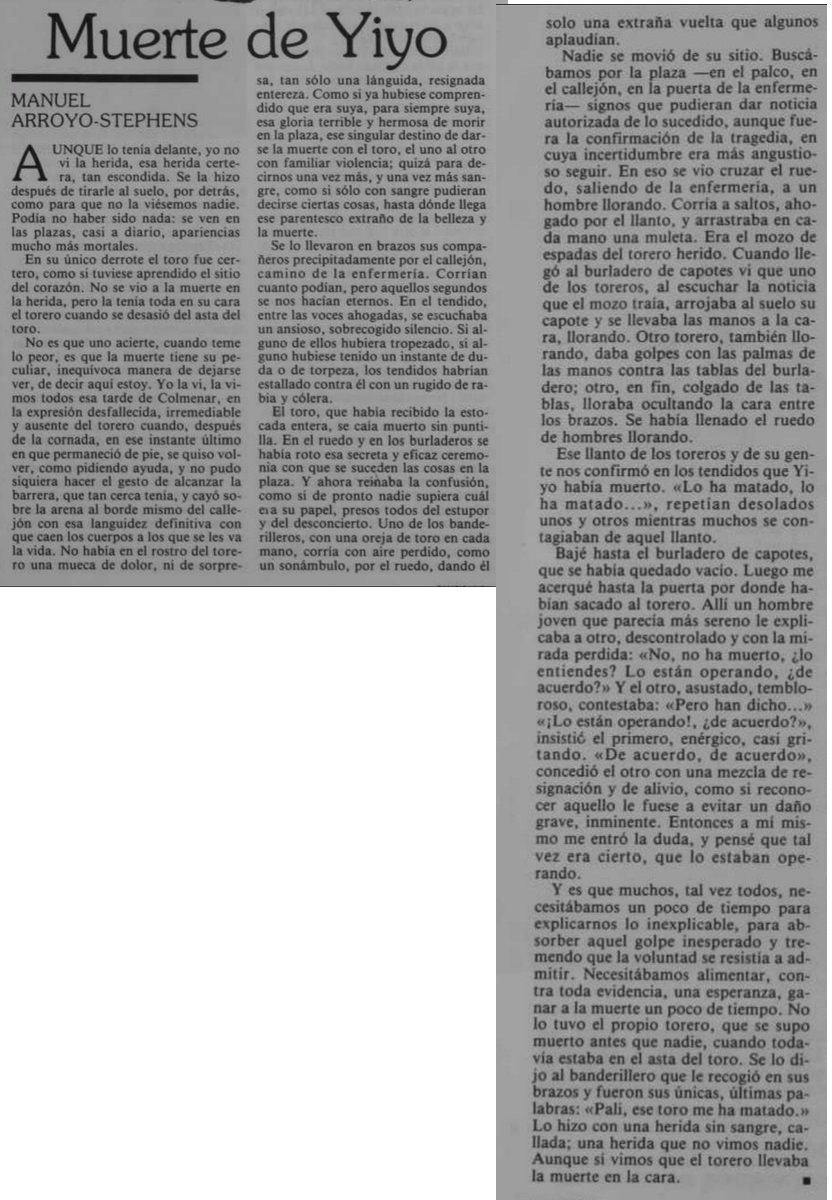 Manuel Arroyo Stephens escribió este artículo sobre José Cubero, Yiyo: es el mismo día de la muerte, 30 de agosto de 1985