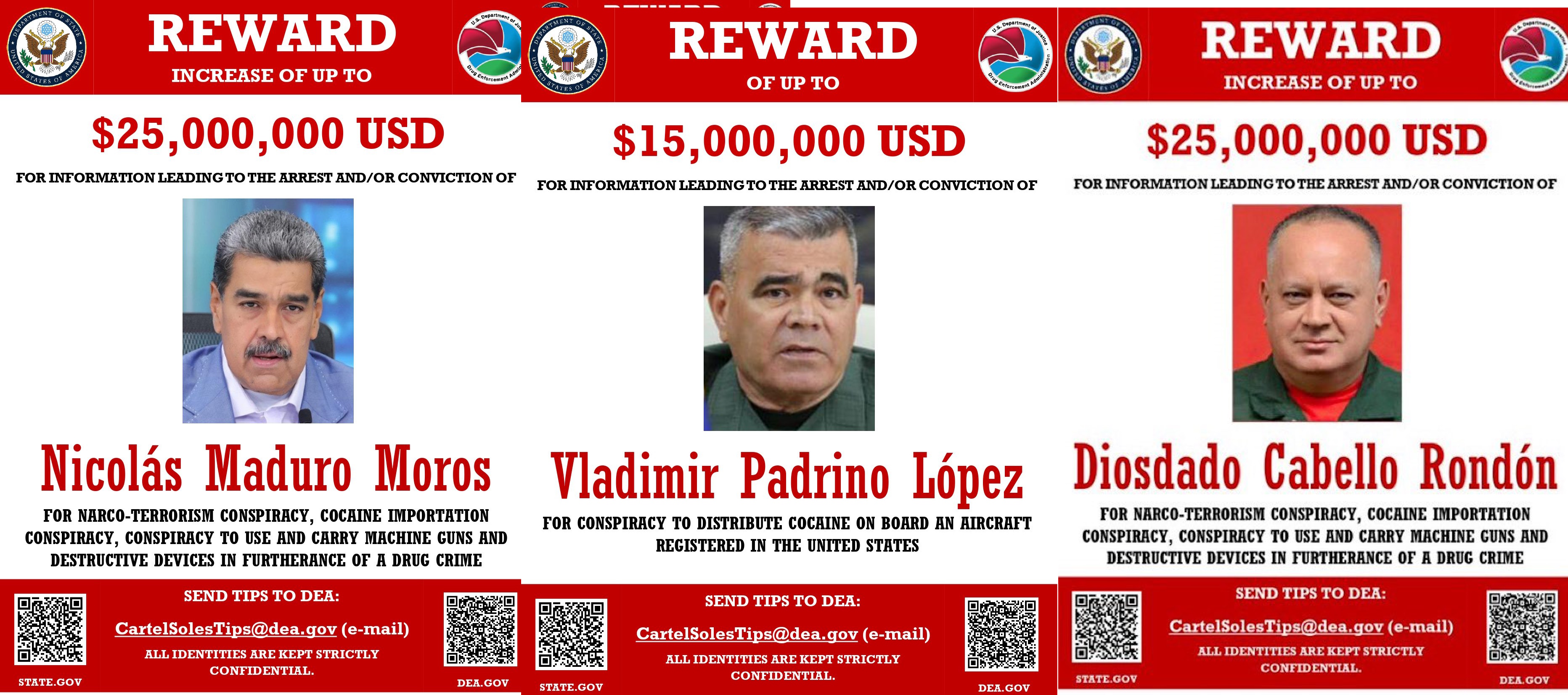 Los países democráticos han denunciado la usurpación de la presidencia. Desde Estados Unidos han aumentado las recompensas por los líderes chavistas.