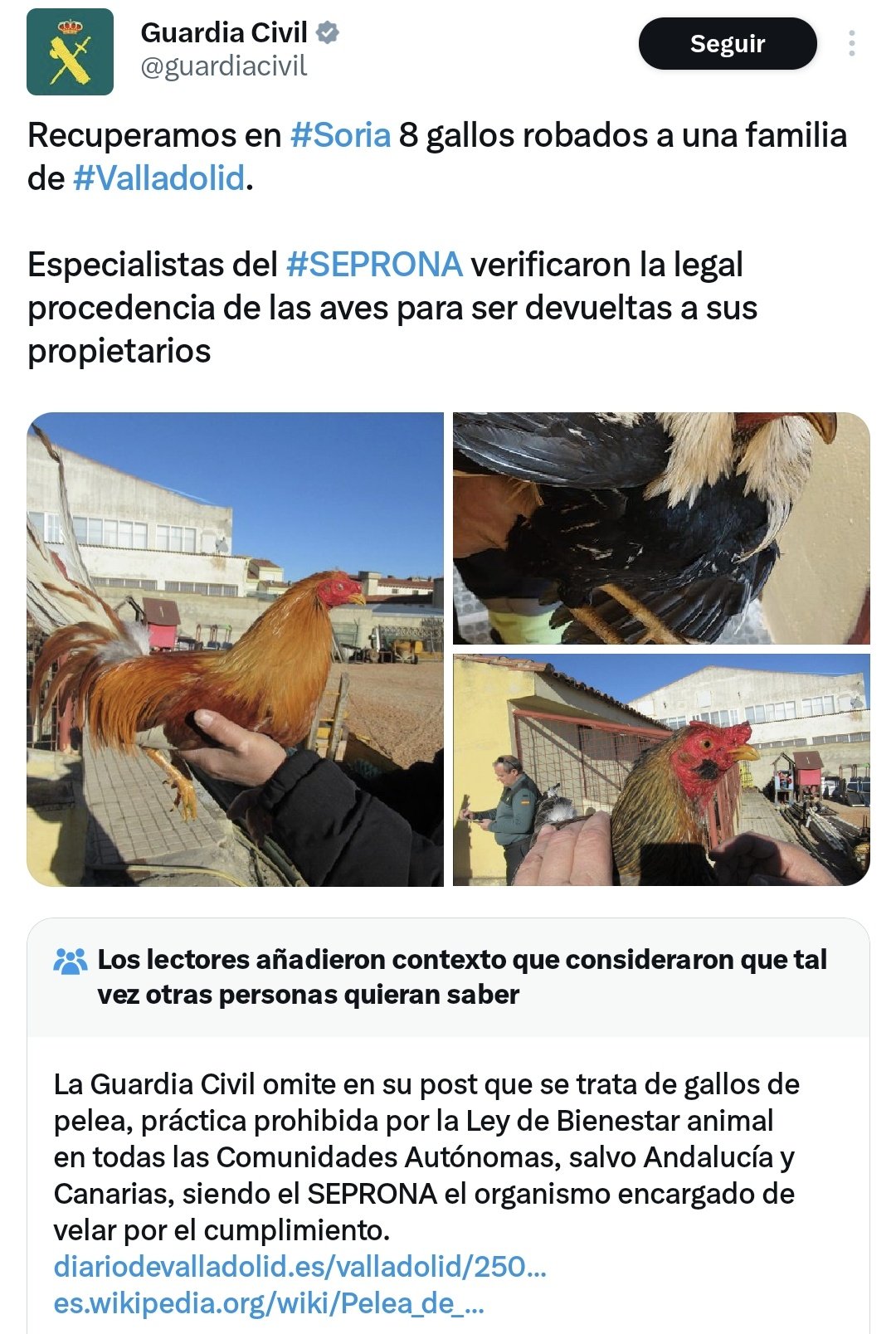 Re: Operación Jaula: desaparecidos unos gallos de pelea en Valladolid, España