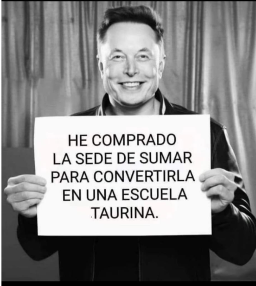 El magnate de los vehículos eléctricos, de la robótica, de las redes sociales, de los túneles, etc., ha decidido comprar la sede de Sumar para organizar una escuela taurina.