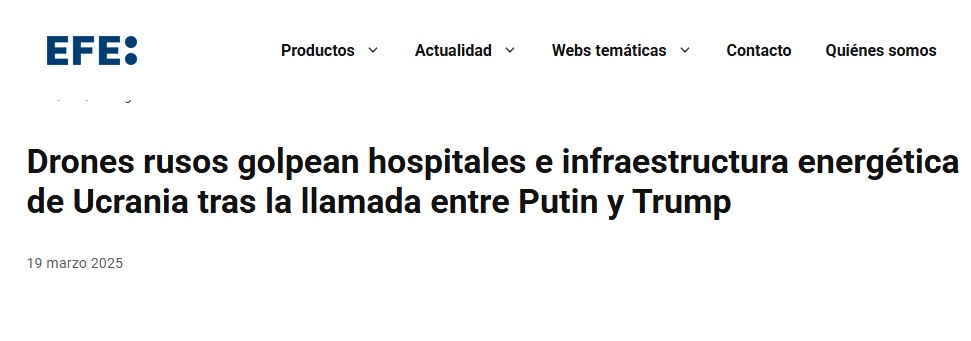 Efe: Rusia ataca hospitales e infraestructura energética.
