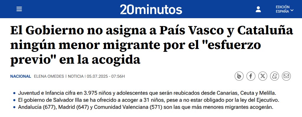 Gabriel Rufián desde el Congreso declaró: "me siento orgullo de ser de un país que acoge, que acoge a un montón de menores extranjeros no acompañados". Ahora acoge CERO. Sánchez concede el privilegio de no acoger menores extranjeros a catalanes y vascos.