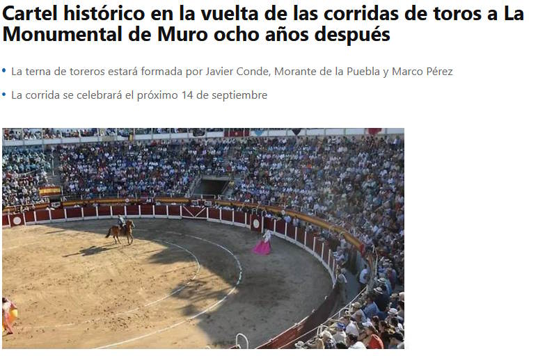 Re: Mallorca se viste de luces para el regreso taurino de Muro en septiembre