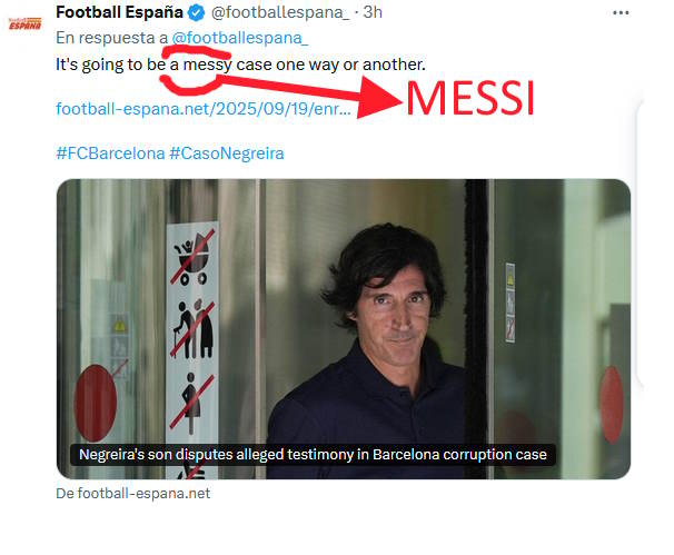 Quien habla es el hijo de Negreira, y quien lo traduce sabe lo que dice y cómo traducir "messy" case. Va a escalar el caso Negreira.