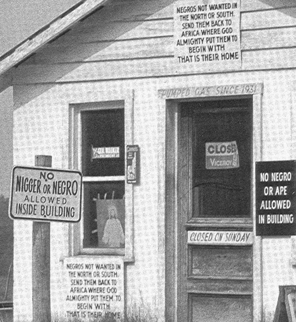 Los transportes públicos obligaban a los negros a sentarse atrás o en vagones separados. No se admiten negros ni monos en el edificio